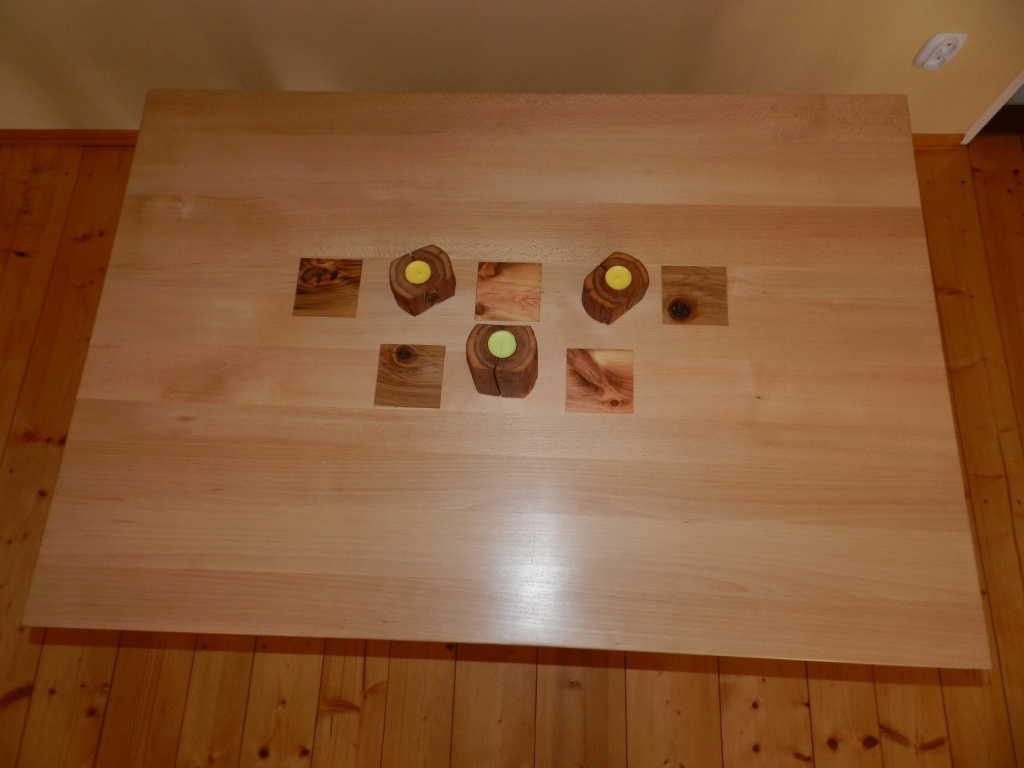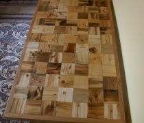mozaika ze starych desek na blacie stołu